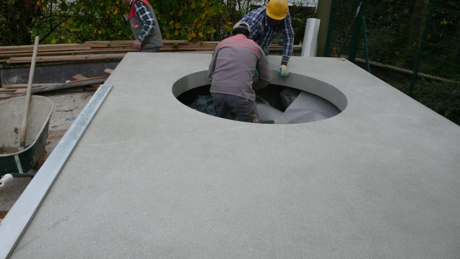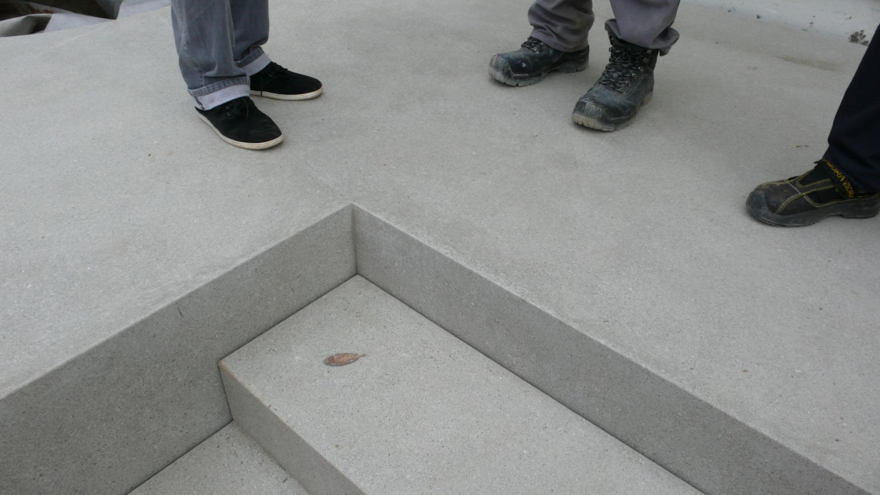 In order to enhance and promote the use of these new spaces, the project displays the solid characteristics usually found in public areas. It appears as a carved monolith built in a custom designed acid treated concrete.