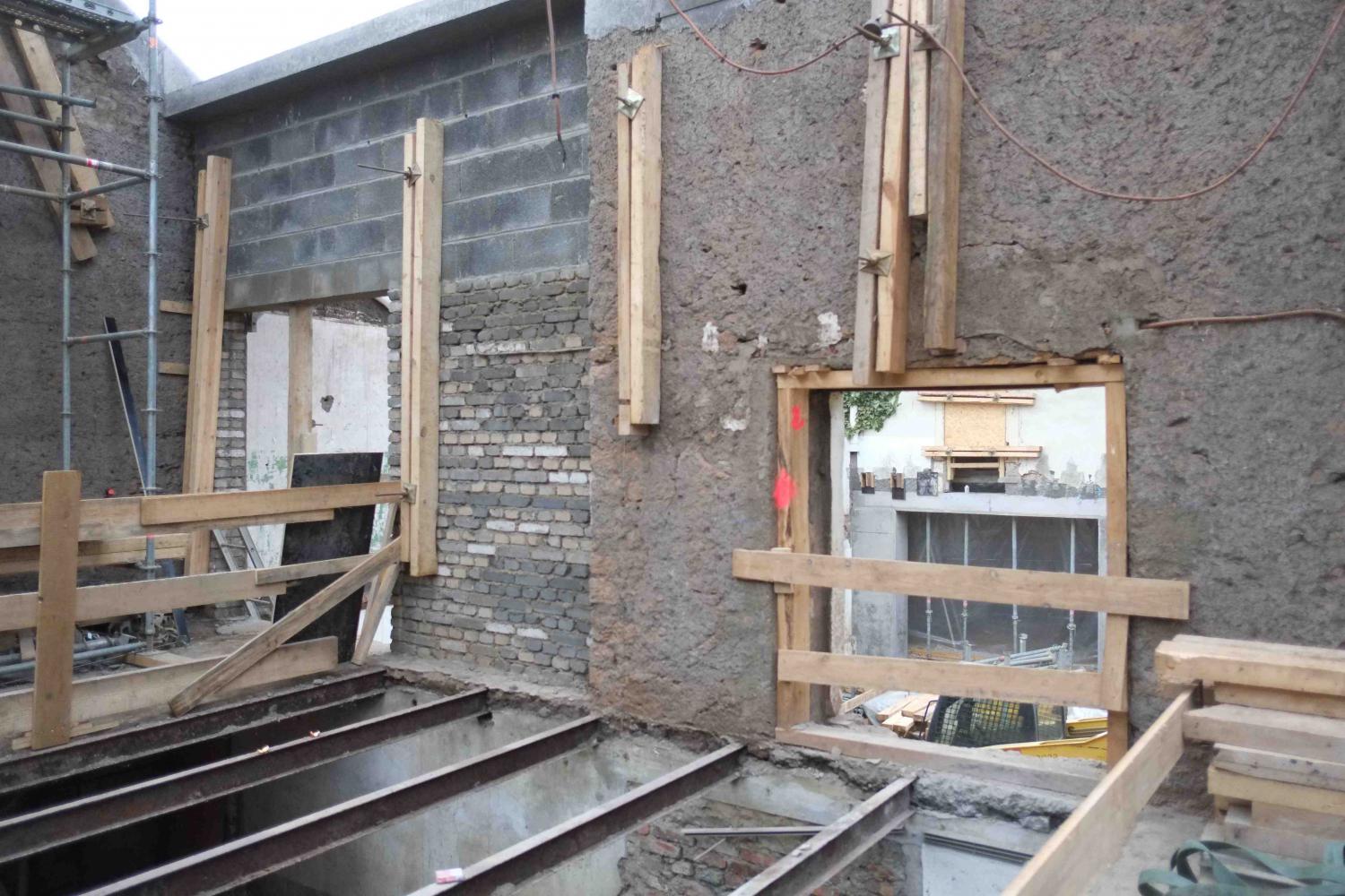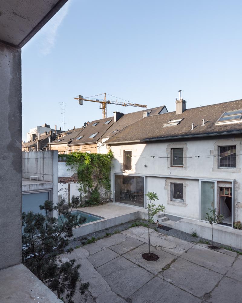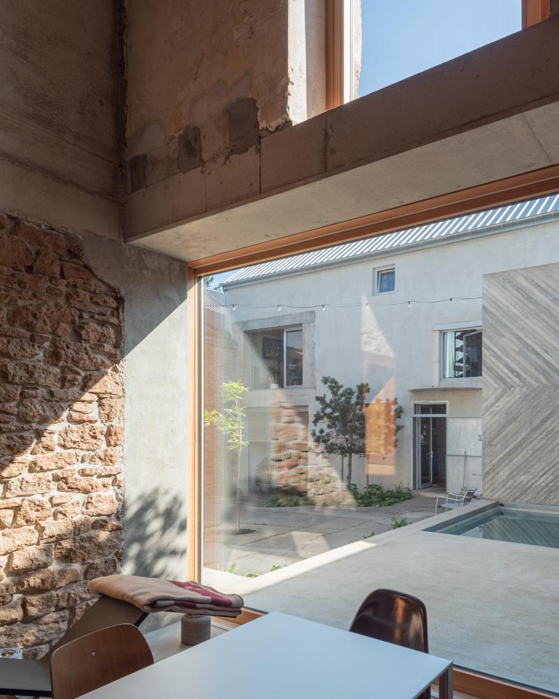 refurbishment of an urban farm into single-family house, courtyard, office building