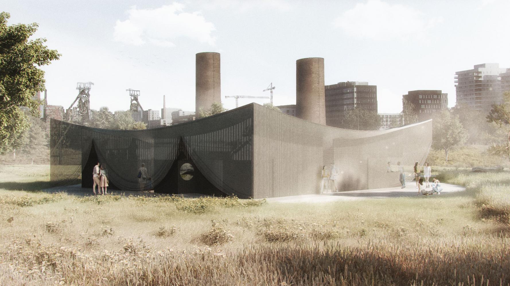 Invited to design a pavilion recalling the lost history of a local water spring, in a parc which is concealing polluted soil, we couldn’t help but propose a cenotaph to water: