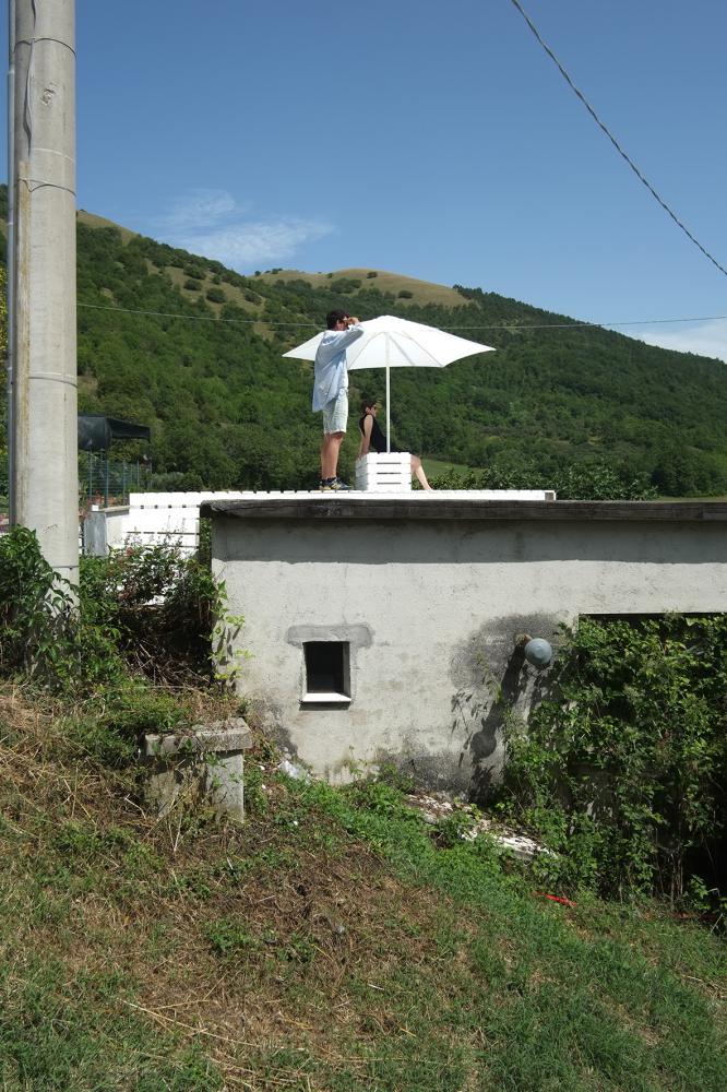 camera topia, the landscape chamber, is opportunistically grafted on an overlooked resource: a flat roof of a private garage. The installation, a sort of public furniture the hamlet of Aiale does not have to this day, enables users to rediscover and share the rich diversity of the landscape.