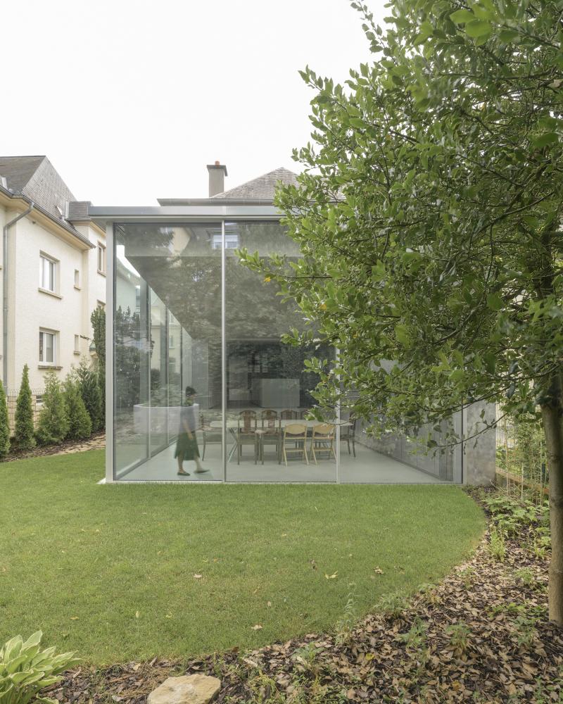 On a quiet street in Luxembourg City, a corner house from 1957, once converted into a children’s day care centre, stood fragmented and stripped of its domestic soul. The rooms were carved up by heavy fire doors, the garden sealed under concrete and rubber safety tiles. In the name of regulation, the post-war home had been sterilised into a place of institutional “care”, its everyday intimacy erased.