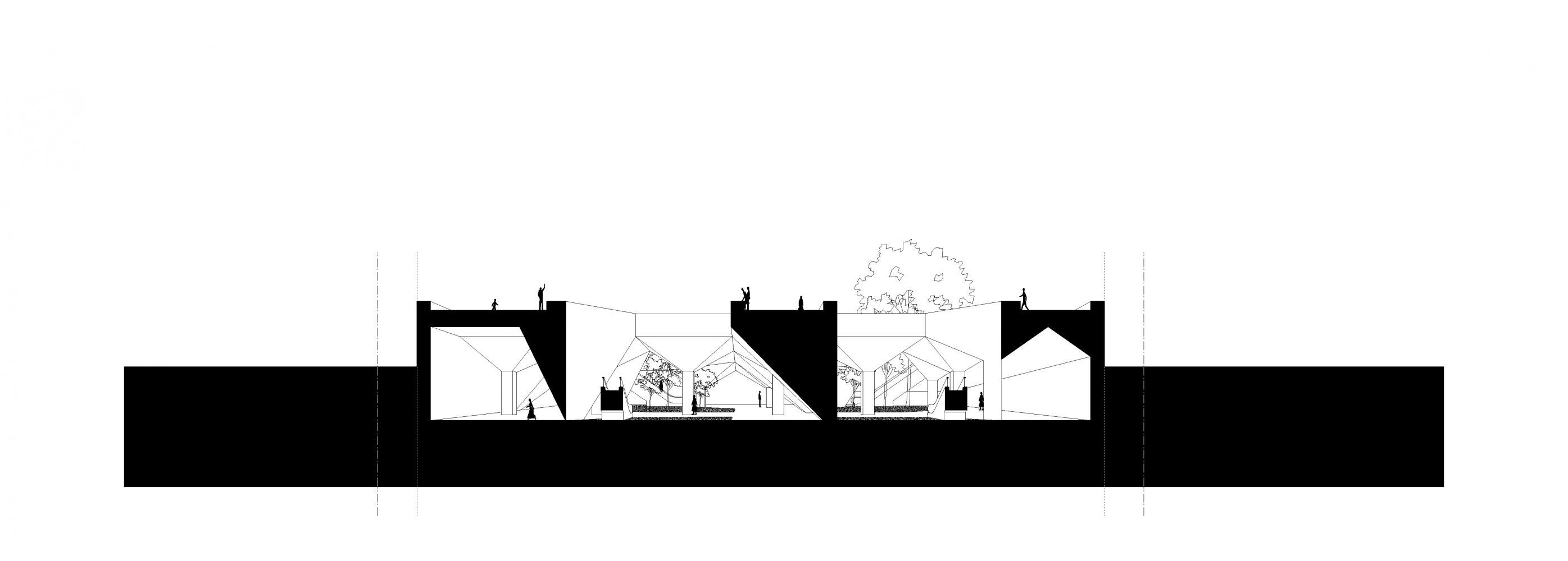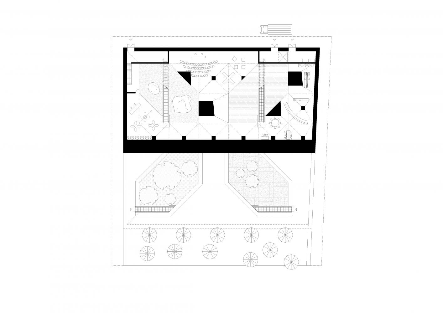 4 patios, of different depths, give access to the underground. A technique of stabilized sand is used to build a massive structure, sunken underground. No insulation, no reinforcement, no engineered complexity. The clear and frank constructive method expresses an honest, spatial experience.