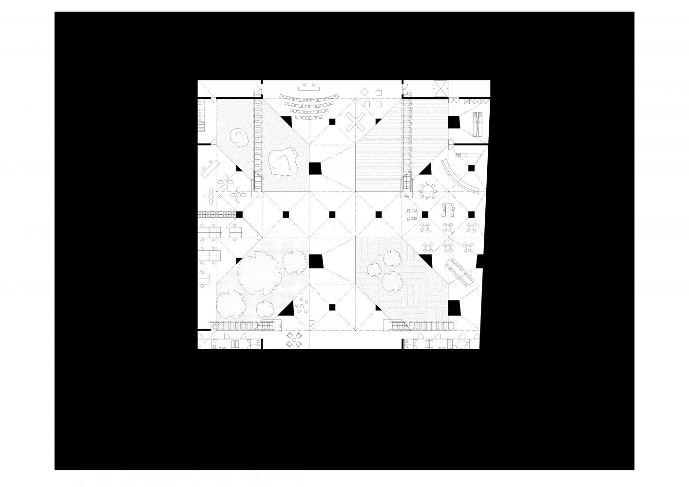 The main focus though will be the cutouts of the roofscape drawn by the patios: they frame the sky and the stars; the elements all humanity shares.