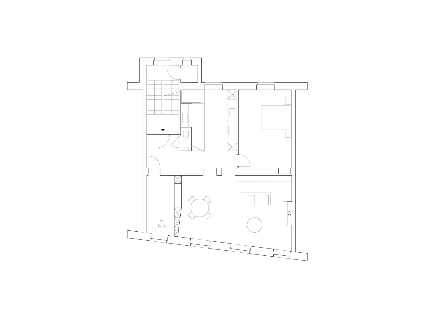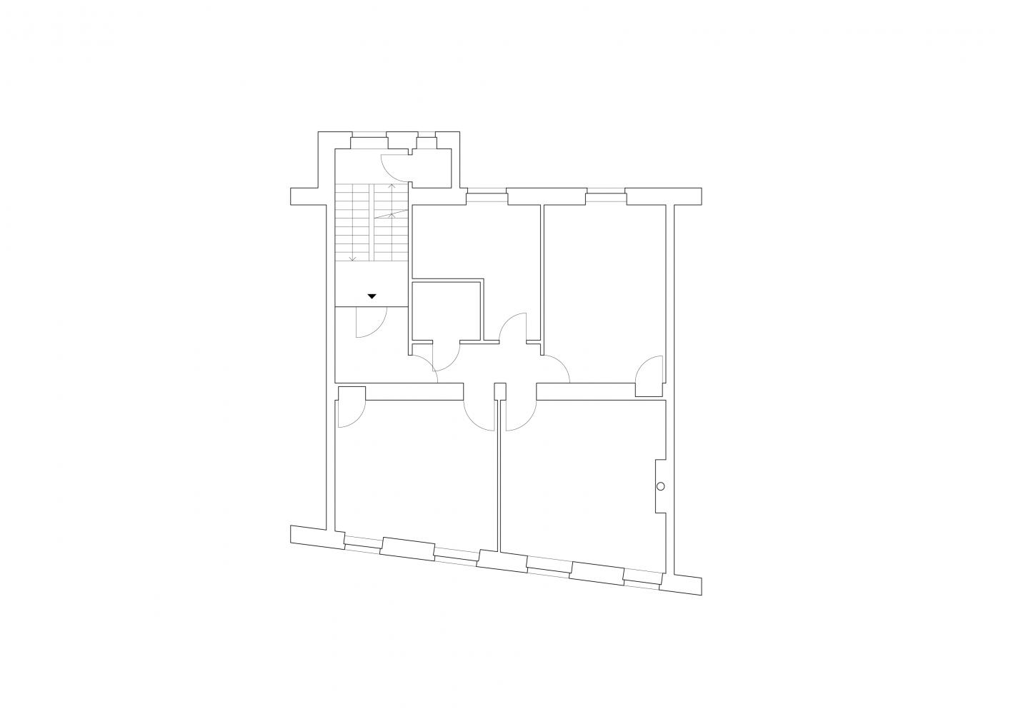 The faint attempts of mid-century domestication were stripped of this derelict early 20th century apartment.