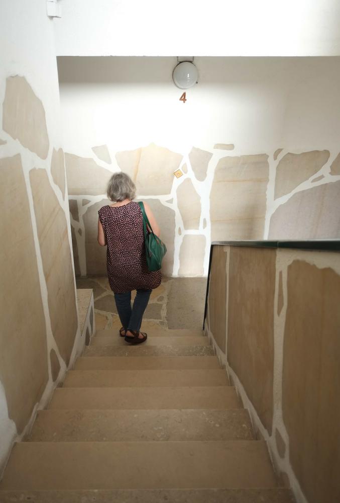 As we rush up the steps clad in broken Cassis stone leftovers, the temperature of the southwest-facing staircase raises one floor at a time. Monique took the elevator, and we don’t want to let her wait. Arriving on the 4th floor, she decides to take us up one more flight of stairs. There, on an intermediate palier, she nostalgically indicates the waste disposal system, which was previously shared by 4 apartments but had been abandoned for hygiene reasons. She doubts that claim. The archaic system, a cast-iron hatch linked to a large pipe, enabled to directly clear domestic garbage from every half floor, at close range of 4 apartments, without needing to walk all the way to the bin, and back. It represented a commodity that simplified daily life, especially for older people.