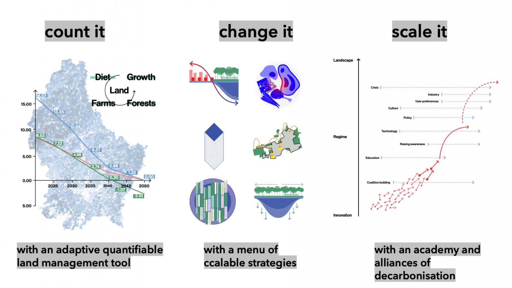 Launched by the Ministry of Spatial Planning, an international consultation labeled “Luxembourg in Transition” sought out to simulate the spatial implications of decarbonization according to the Paris agreement, and beyond, a quest to foster plans for a regenerative and/or resilient future.