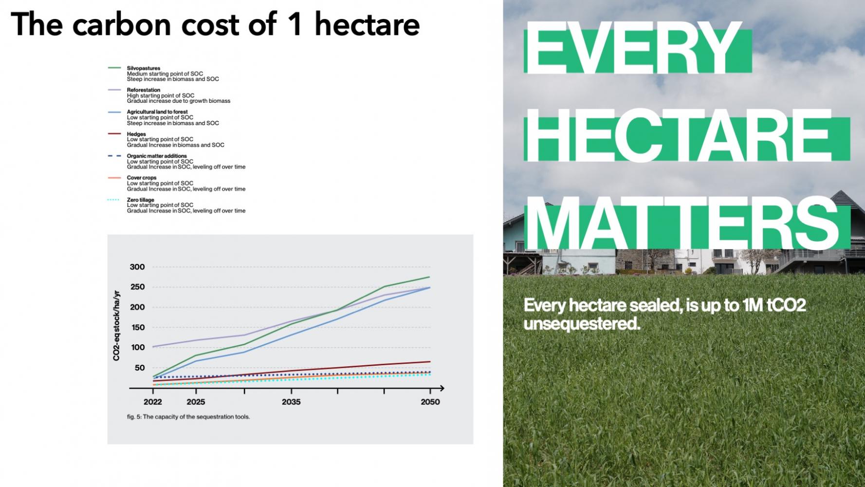 Preserving unsealed land in order to exploit its full sequestration and/or production potential can help to overcome the current status-quo of mediocre planning and building reflexes which are in fine dissolving urban structures at the cost of communities.