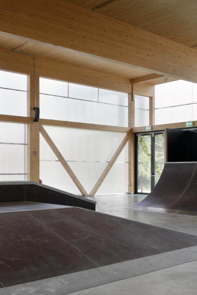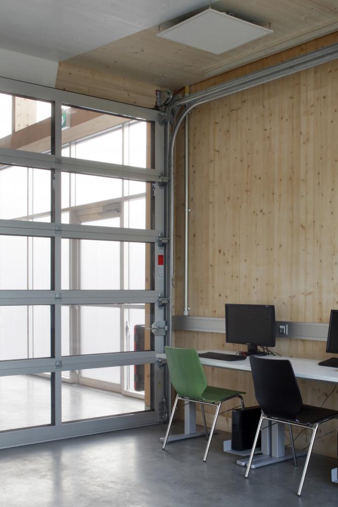 In winter, only the core functions are heated. These functions are located in domestic-sized spaces, boxes built out of massive wood, and insulated to contemporary standards.