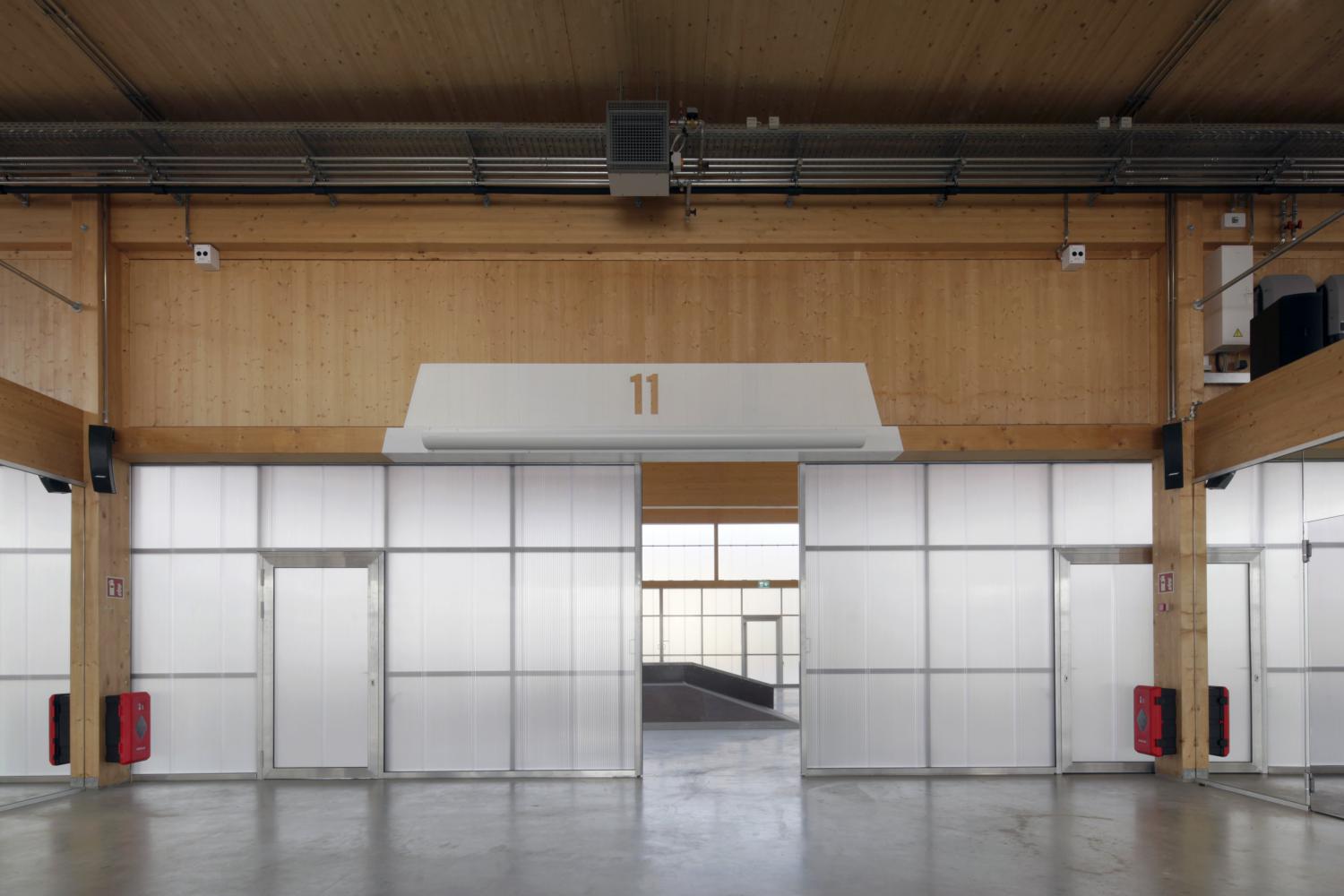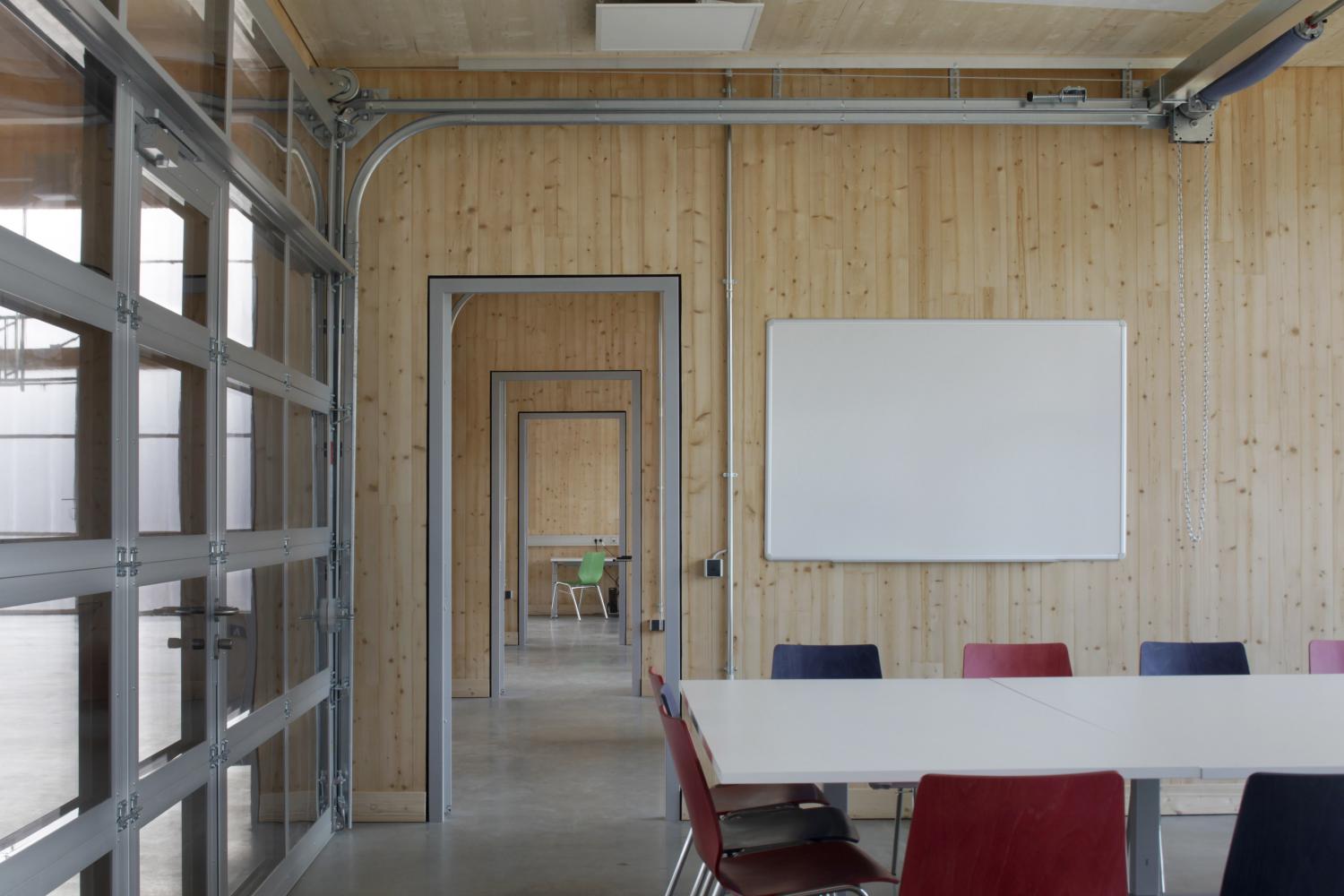 From spring to autumn, the boxes can completely open up to the shell via glazed garage doors that vanish on the boxes’ ceilings.