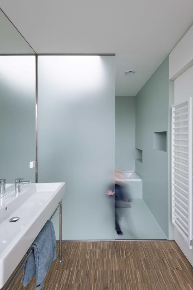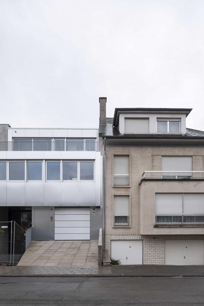 On a fairly narrow plot, this terraced house extends over 4 spatially very different floors.