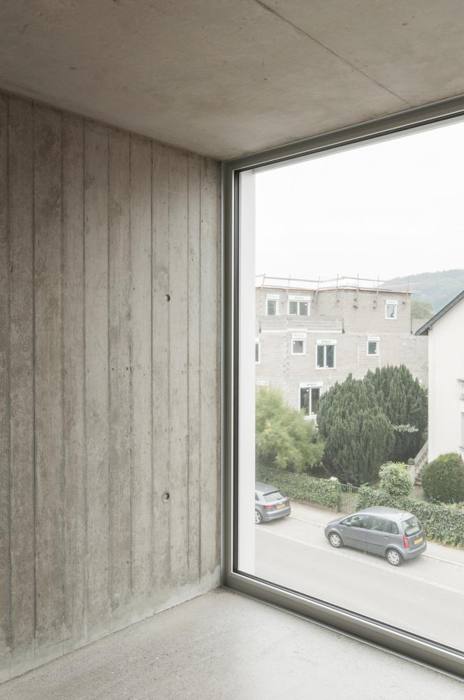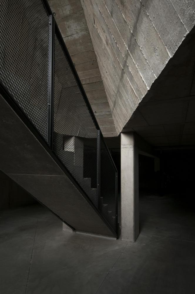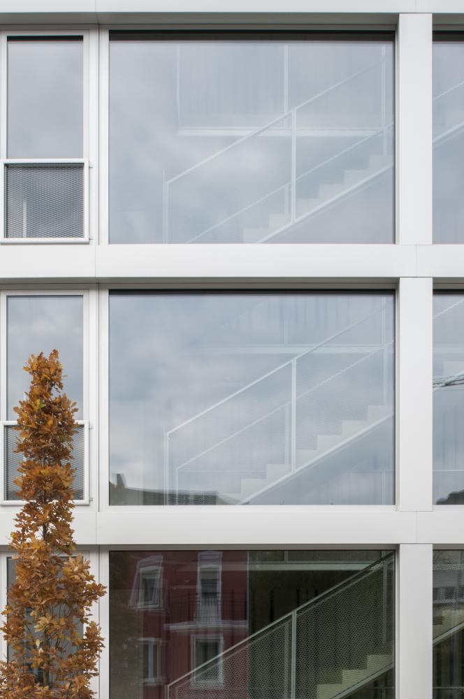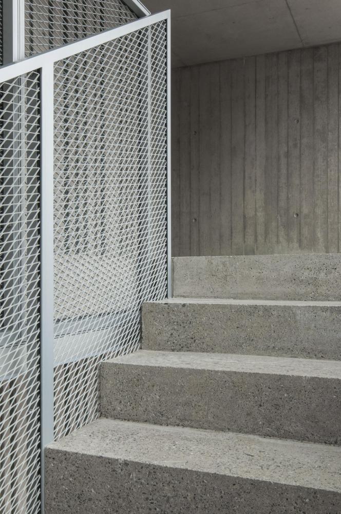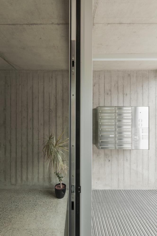 The building has no outside façade, only triple glazed windows, exploiting a maximum of daylight for the residents. Inside, the building’s structure is exposed and qualified through different processes, like polishing or matrix casting of concrete.