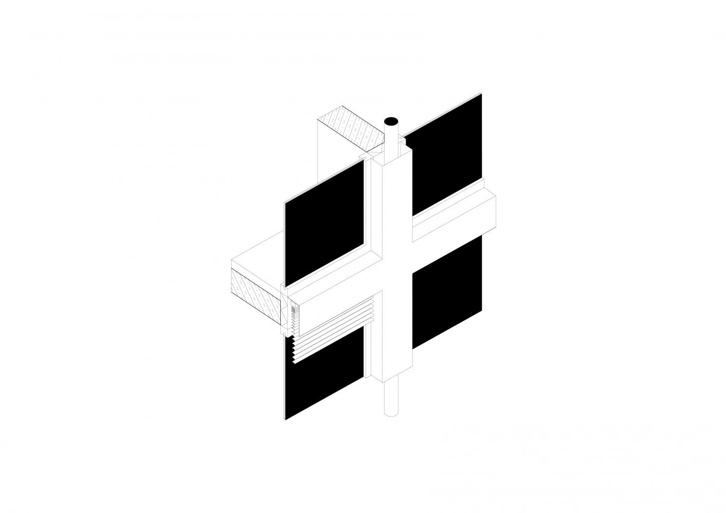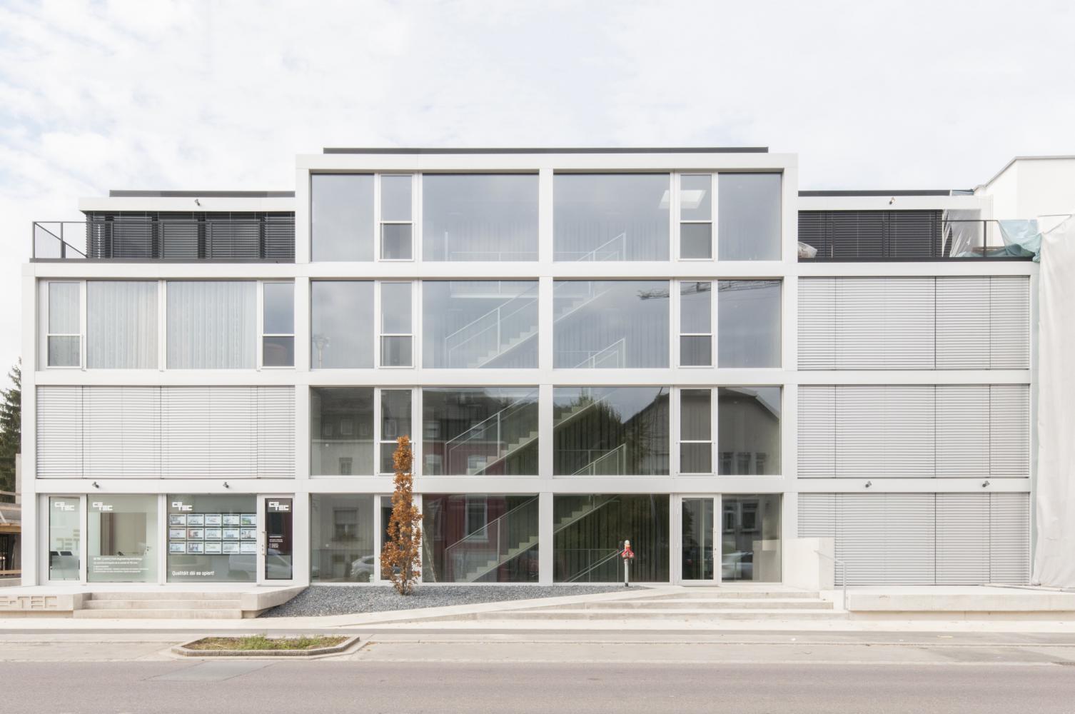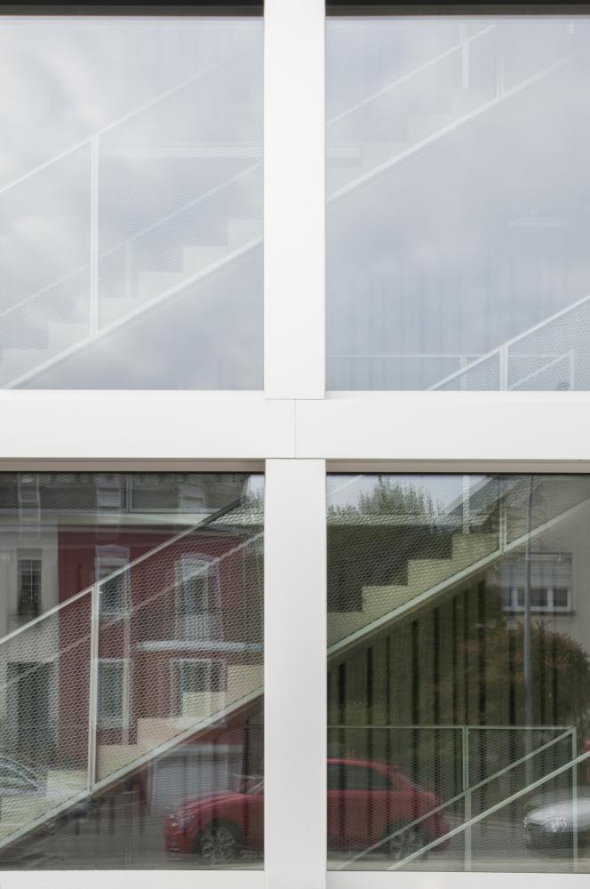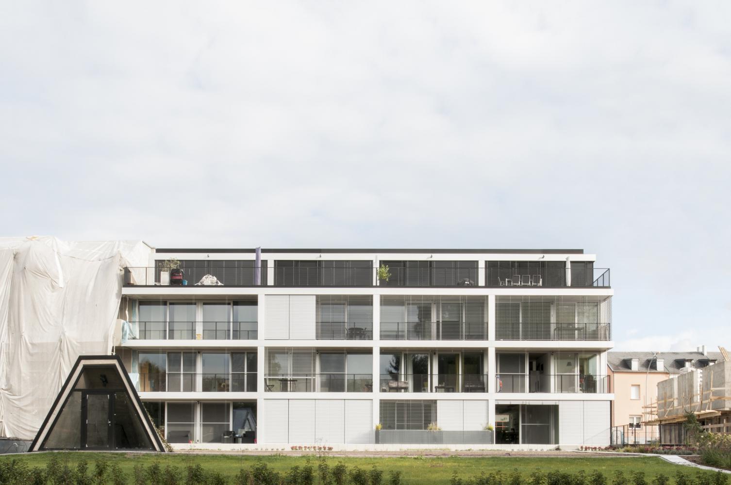 The building has no outside façade, only triple glazed windows, exploiting a maximum of daylight for the residents. Inside, the building’s structure is exposed and qualified through different processes, like polishing or matrix casting of concrete.