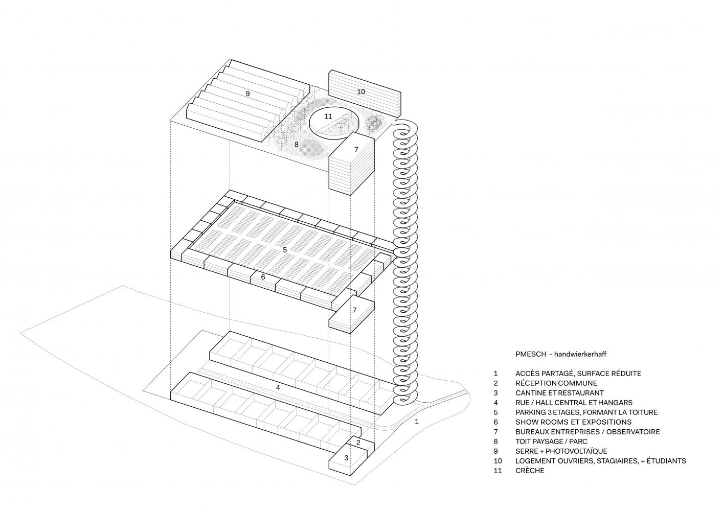 PMEsch hence proposes to introduce the sharing economy in these zones, mixing warehouses withcomplementary program in order to become a truly urban infrastructure, a constructo-collaborative city campus.
