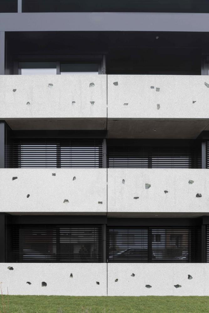 There are no closed facade elements to the exterior, only sliding windows that give barrier free access to the balconies.